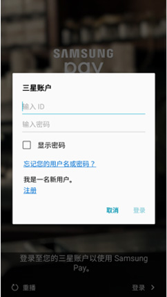 开启SAMSUNG PAY APP,登陆三星账号