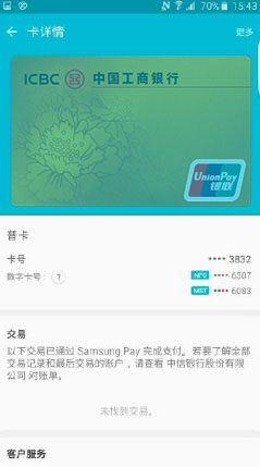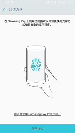 如果设备上已经注册了指纹,则需要扫描用户指纹进行验证,确保Samsung Pay信用卡用户和设备用户一致。