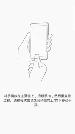 点击[使用指纹],如果设备上还没有注册指纹,则点击进入指纹注册页面按照图示要求录入指纹。