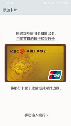 点击[添加]进入到扫描银行卡的界面,通过使用手机摄像头来识别卡号进行录入;