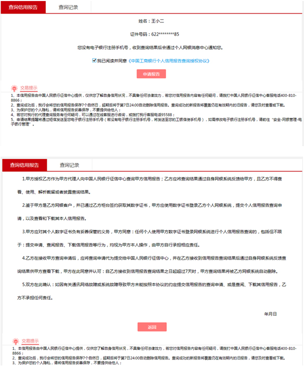 |   想了解自己的信用状况,又不方便到现场查询怎么办?   工商银行手机银行、网银已推出人民银行征信中心个人信用报告自助查询功能,免费为您提供个人信用报告查询服务,还支持下载哦!   功能亮点:1、无需现场申请,无需申请材料,在线查询0接触