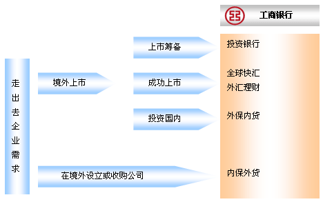 在贵公司拟在境外上市时,工商银行可通过工商东亚等境外分支机构为您提供投资银行服务;您成功上市后,工商银行可通过全球快汇将您上市募集的资金汇回国内,并对资金提供外汇理财服务;如您的境外上市公司拟在国内成立外商投资企业,工商银行可联合境外分支机构对您在国内新成立的公司提供外保内贷融资产品;当您拟在境外设立贸易窗口公司/设立工程承包公司/收购境外公司时,工商银行可联合境外分支机构对您的境外企业提供内保外贷融资产品。 另外,工商银行可凭借境内外机构网络优势,为您的境内外公司提供专业咨询及各项结算、融资、理财及风险管理产品服务。 (二)适用对象:具有进出口业务经营权的法人客户和小企业。 (三)特色优势 1.该套餐集合了各个产品的功能和优势,能够为贵公司节约财务成本、规避政策、汇率等风险,提供全方位增值服务; 2.工商银行境内外机构网络优势及广泛的业务经营范围,能够为您的境内外关联企业提供方便快捷的金融服务。 (四)开办条件 在您计划走出境外的筹备阶段以及成功走出境外后的后续投资、关联企业融资等各个阶段。 (五)服务渠道与时间:在我行国际结算及结售汇业务经营网点的营业时间内办理。 (六)常见问题 1.注意关注国内及境外所在地的金融政策,避免政策风险; 2.“内保外贷”业务须遵守外汇管理局及工商银行的有关规定。 (七)业务示例 为响应当前国家支持企业走出去的大背景、进一步提升自身经营层次,国内某民营企业拟在香港主板上市,发行股票额度为1亿美元。 工商银行得知这一消息后,向客户推荐使用“跨境通”套餐服务。由香港控股公司工商东亚为企业设计资产重组、上市包装等在香港上市所需的一系列投资银行服务,使其得以在香港成功上市。为方便客户的结算和后续融资,工商银行在香港的控股机构工银亚洲为上市公司开立了资本金及结算账户,并通过全球快汇将企业上市募集的8000万美元汇回国内。收汇后工商银行按照企业的风险偏好对资金提供了本金保障、预期年收益在2%-6%的保本型外汇理财服务。 三个月后,该企业的香港公司正式开始运作,主营贸易与投资,考虑到成本因素,该企业的香港上市公司选择境内某地成立外商投资企业。在投资筹建期,由于土地证等相关证件还未办齐而无任何抵押物,投资企业面临资金周转困难、针对此种情况,工商银行联合工银亚洲共同为投资企业提供外保内贷产品,由其香港上市公司向工银亚洲申请开立受益人为工商银行的备用信用证,工商银行以备用信用证作为担保,为境内外商投资企业发放人民币贷款,解决其筹建期资金紧张且无抵押物的问题。 本页面内容仅供参考,部分内容以当地分行公告与具体规定为准。