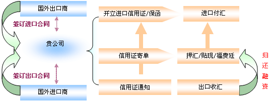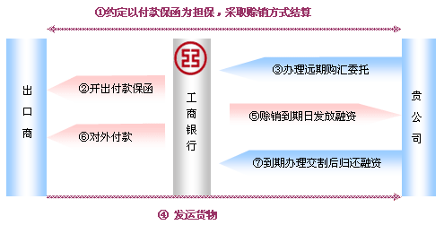 四、全程贸易通 (出口信用证+进口信用证/付款保函+融资) (一)业务简述 当贵公司既有出口业务又有进口业务时,工商银行可为您提供“全程贸易通”套餐。该产品是以出口收汇为保障措施,为您办理进口结算和进口结算项下的融资业务。本套餐集进出口业务项下所有的结算、外汇金融产品为一体,同时配以外汇资金产品为您规避汇率风险。 简要流程图如下: