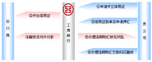 六、进口捷益通 (进口开证+进口押汇/代付+应付款汇率风险管理(如即远期购汇)) (一)业务简述 如果贵公司与国外出口商约定以信用证方式结算,在付汇时需要资金融通,同时希望锁定财务成本,您可以选择工商银行的“进口捷益通”套餐。 简要流程图如下: