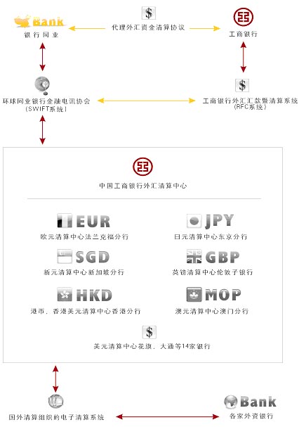 五、解决方案 1. 代理外汇资金清算: 工商银行是中国最大的清算银行,拥有国内最先进的本外币资金汇划与内部清算系统,目前工商银行已可以提供世界所有可自由兑换货币的清算服务。