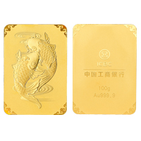 特点: 金条中央为双鲤戏水,四边采用如意云纹造型,设计精美,吉庆如意。孩子升学,商务礼赠,结婚贺礼佳选。