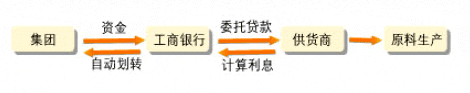 5、供应链解决方案 工商银行为集团专门设计了两款产品。对于上游供应商,采取委托贷款方式,集团可以将部分预付货款以委托贷款方式“贷”给上游供应商,在供应商交付货物时,如果产品质量、交付期限达到集团要求,集团以支付采购款冲减对供应商的委托贷款,如果交货质量、交付期限不符合要求,集团可以采取拒付货款、扣收抵押物等方式进行财产保全。