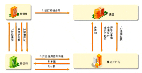 对于下游经销商,工商银行专门设计了一款融资产品——联合开证。具体的流程是:集团选取规模大、效益好的经销商,首先由经销商在所在地工商银行开立保证金账户,按比例缴存保证金后,经销商开户行为其开立不可撤销延期付款信用证,用以向集团支付货款;集团收到工商银行提供的国内信用证正本后委托物流仓储商发货,并向工商银行提交信用证项下单据进行委托收款或申请卖方融资(议付);信用证到期,开证行从经销商结算账户中扣划相应款项进行付款。