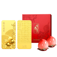 取传统福寿吉祥元素,打造长寿祝福金品,祈祝长辈健康长寿。创新传承失蜡古法工艺,双桃立体逼真,拔金而起;葫芦缠绕仙桃,福寿双全;松柏长青底纹,益寿安康;百寿聚福,长寿康宁。配赠福寿双桃,祝福加倍。